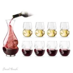 En läcker karaff som speciellt utformats för att lufta viner vid dekantering. Conundrum Vinluftningskaraff från brittiska Final Touch har en unik konstruktion som i två steg syresätter vinet och öppnar upp dess smak och arom. Karaffen i sig är läckert skruvad och levereras med 4 st matchande vinglas utan fot. Glasen har även de försetts med den elegant skruvade formen som karaffen har och är riktigt vackra tillsammans.
