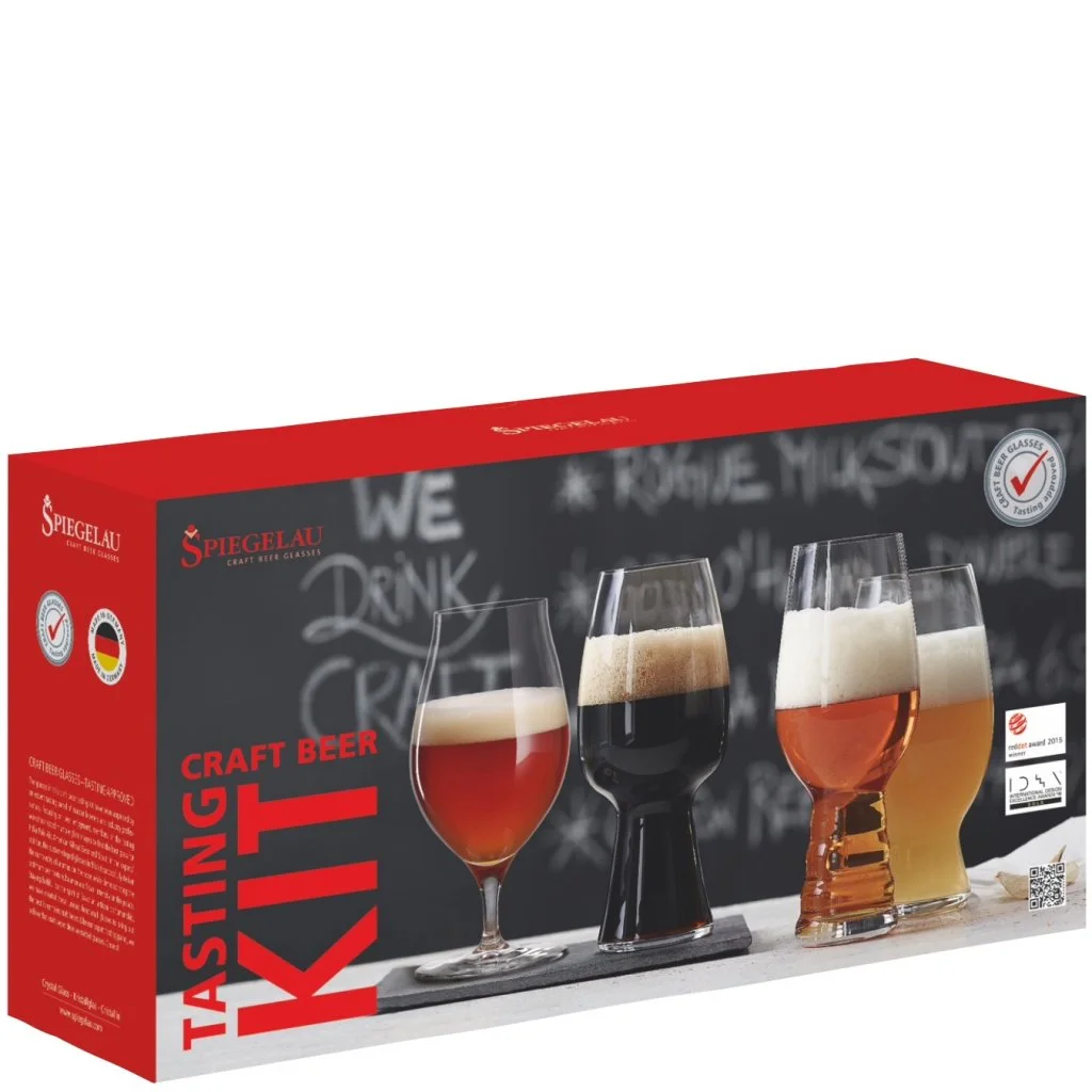 Den revolutionerande serien med ölglas från Spiegelau finns nu i ett läckert Craft Beer Tasting Kit. I setet ingår modellerna IPA, Stout, American Wheat och Barrel Aged Beer med ett glas av varje sort. Snyggt förpackat i en elegant kartong. Ett utmärkt sätt att tillhandaha rätt glas till ett stort antal stilar av modern hantverksöl.